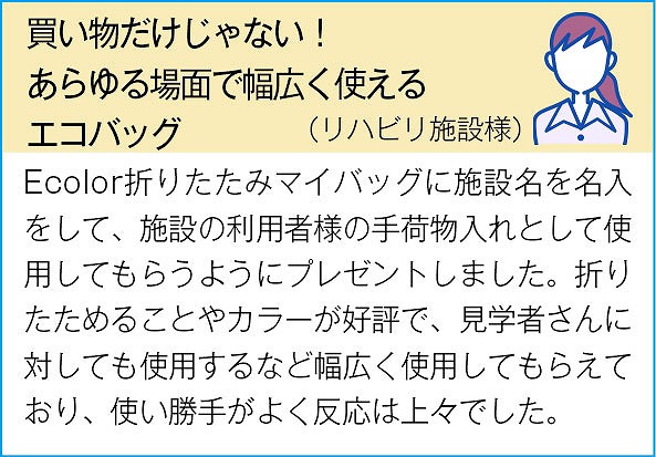 携帯に便利なエコバッグ。Ecolorシリーズは、企業カラーや「推し色」に合わせてカラーが選択でき、名入れが可能です。