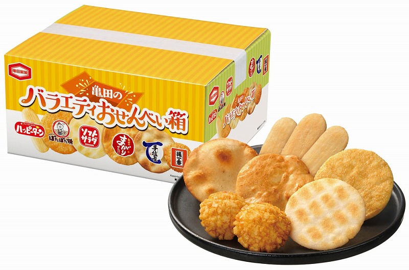 子どもからおじいちゃん・おばあちゃんまで家族みんなで楽しめる、いろんな種類のおせんべいのセットです。