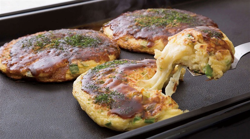 1977年の創業以来守り続けてきた秘伝のだしと京都井澤製粉製造の小麦粉を使用した生地は、京都どんぐり最大の特長であるふわふわ食感をお楽しみいただけます。京野菜九条ねぎは1cmと大きくカットして加えており、九条ねぎの甘みと香り、シャキシャキ食感が更に食欲をそそります。特製の濃厚ソースは京都宇治の天然水で仕込んだオリジナルです。