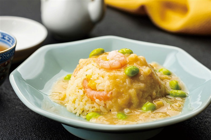 蟹の旨み広がる贅沢あんかけと直火炒めえび炒飯の至福のセットです。