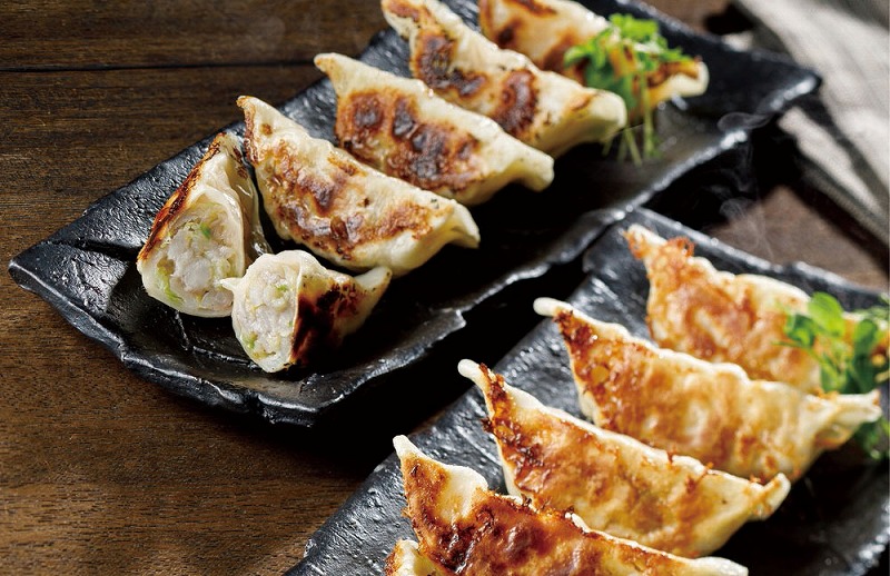 店頭販売で1日3万個(5千人前)以上を売り上げた、地元山形で人気の「ひろしの餃子」です。大ぶりのエビのぶつ切りと、オホーツク産の刺身用ホタテがたっぷり入った2種類の海鮮餃子は、どちらもモチモチ食感の皮と中身の餡との相性が抜群です。