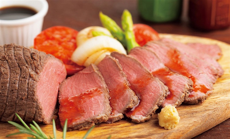 赤ワインに漬けこみ、風味を付け素材の旨みを逃がさないよう、独自の製法でじっくり低温調理しました。大変ジューシーなローストビーフです。オードブル、サンドウィッチ、サラダ等、様ーな用途にご利用いただけます。
