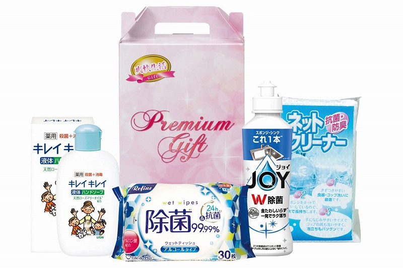 [セット内容] ・ライオン キレイキレイ薬用液体ハンドソープ120ml(箱入)×1 ・P&G除菌ジョイコンパクト170ml(さわやか微香)×1 ・リファイン アルコール除菌ウェットティッシュ30枚×1 ・ネットクリーナー×1
