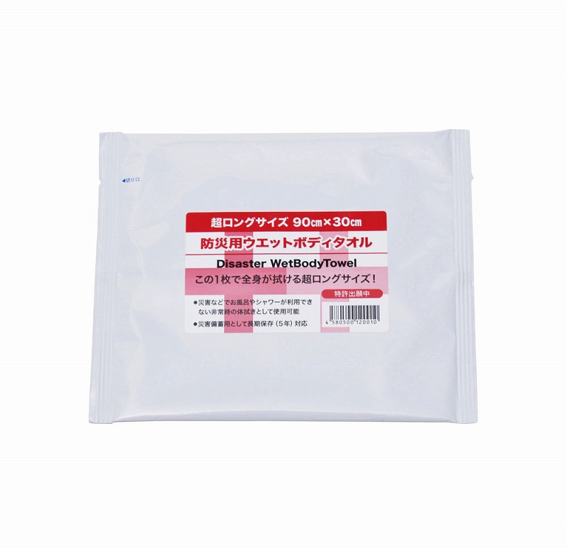 完全密封仕様、ノンアルコール、無香料。1枚で全身がふける超ロングサイズのウエットボディタオルです。