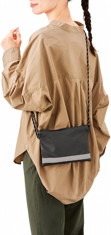 サコッシュに入った防災用品6点セット。 被災時に必需品をすぐ持ち出せるので安心。 紐を外して、ポーチのように持ち運びも可能。