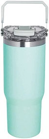 車のドリンクホルダーにセットができ、持ち運びも 便利なハンドル付きの大容量タンブラーです。 ストローと直飲みができる2WAYタイプです。