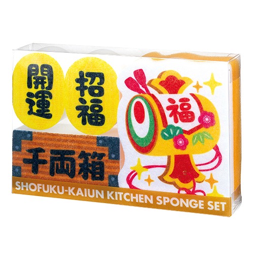 ”販促品 ノベルティ グッズ” 『招福開運 キッチンスポンジセット』