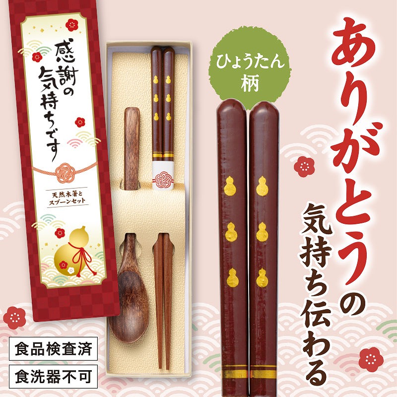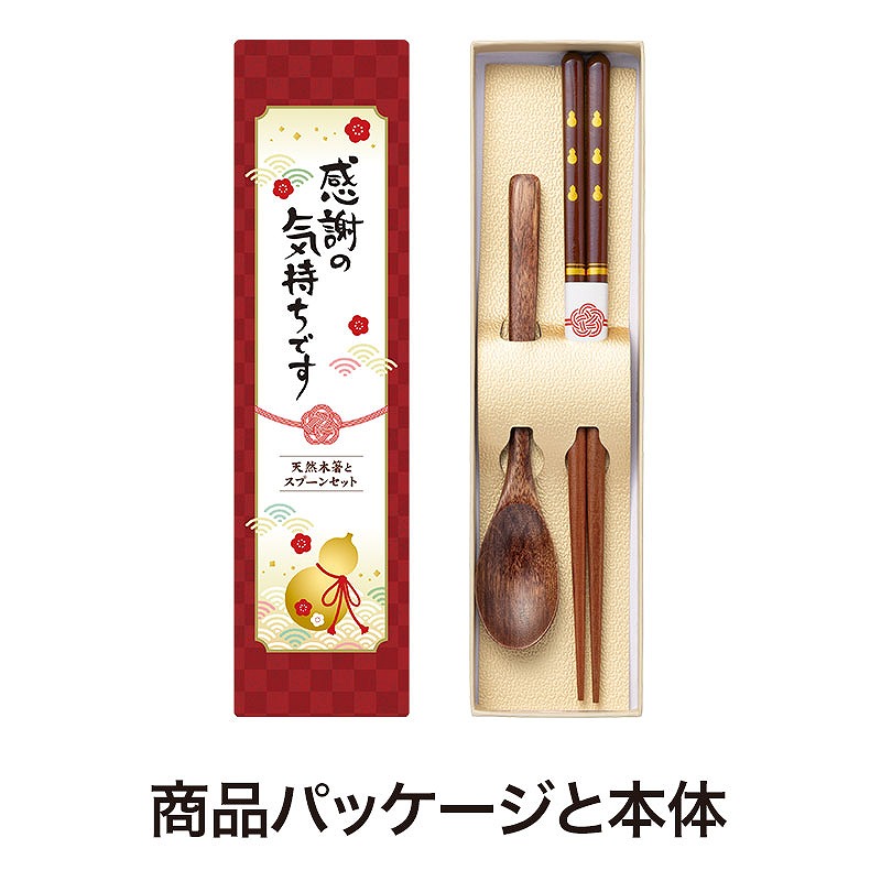 ”名入れ ロゴ入れ オリジナル” 『感謝の気持ちです 天然木箸とスプーンセット』