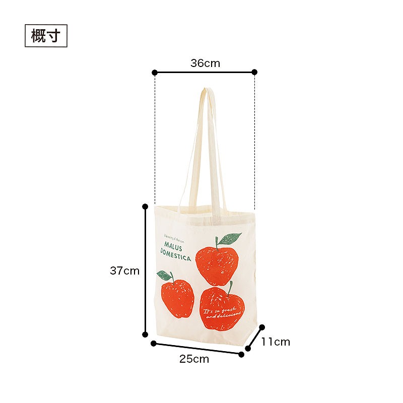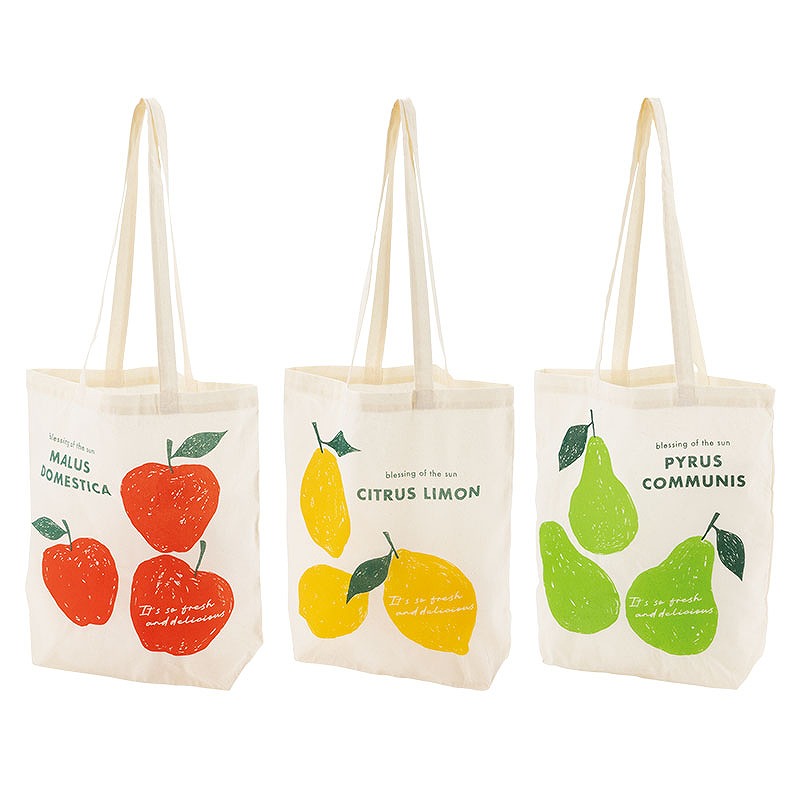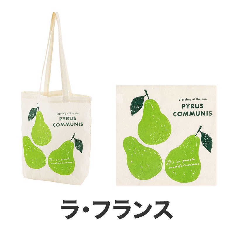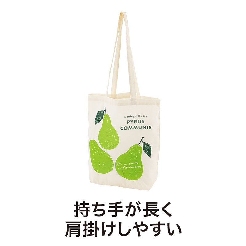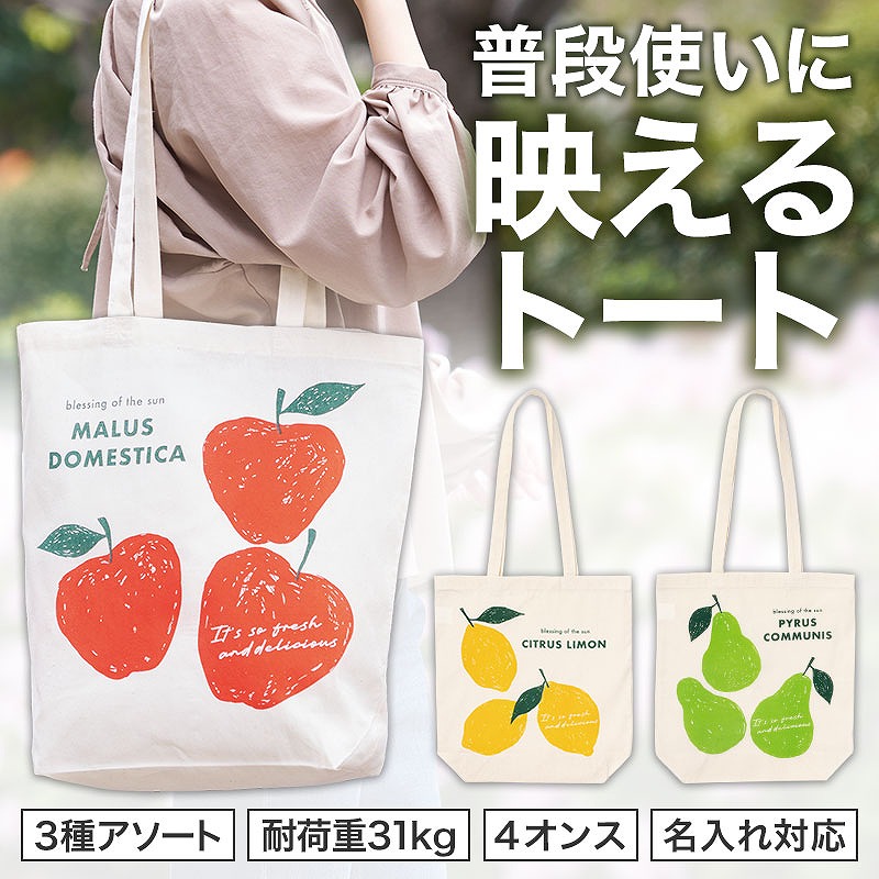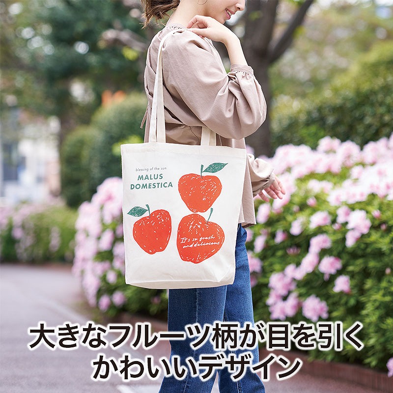 バッグ全体に、大きくフルーツをデザインしました。名入れにも対応しております。フルーツ類のお取り扱いがある店舗・スーパー・道の駅、 そして飲食業界や食育関連イベント等で、是非ご活用ください。