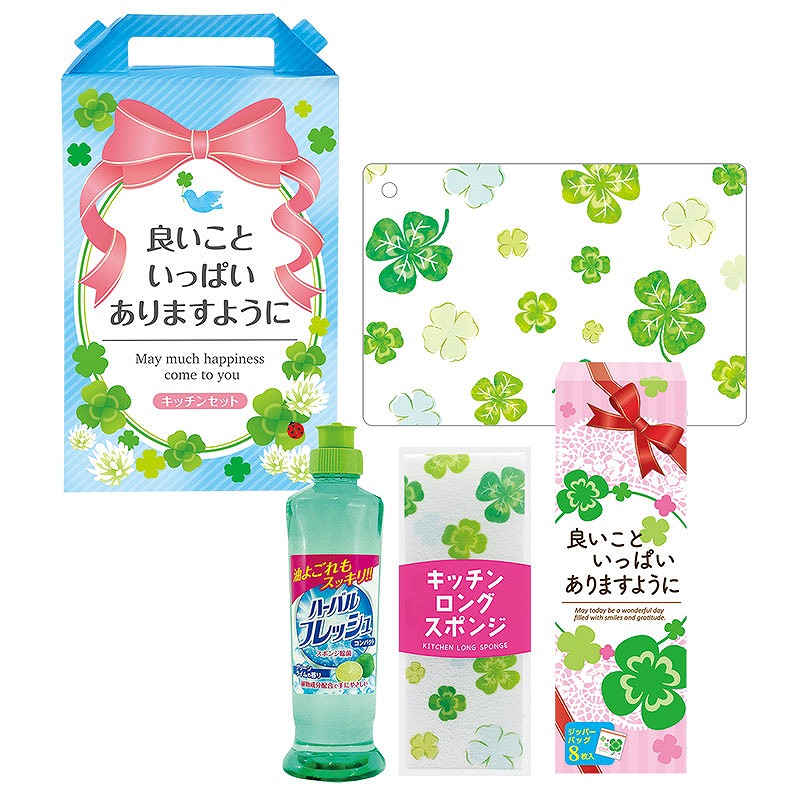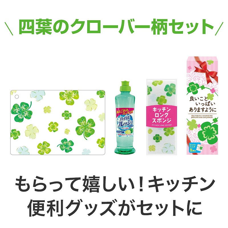ハーバルフレッシュコンパクト(グリーンライム) 250ml・キッチンロングスポンジ・ミニまな板シート・ジッパーバッグ(8枚入) 各1
