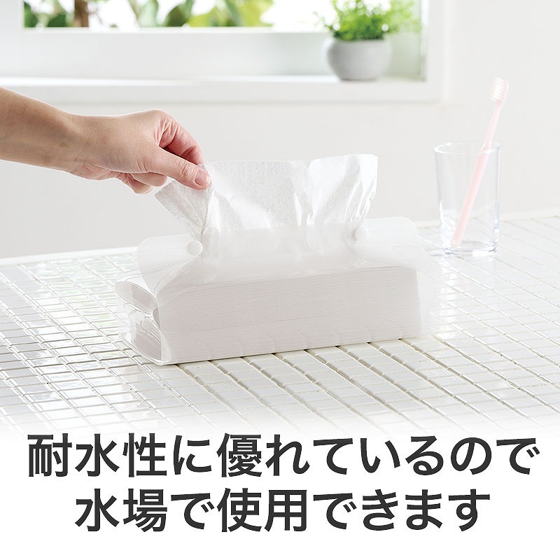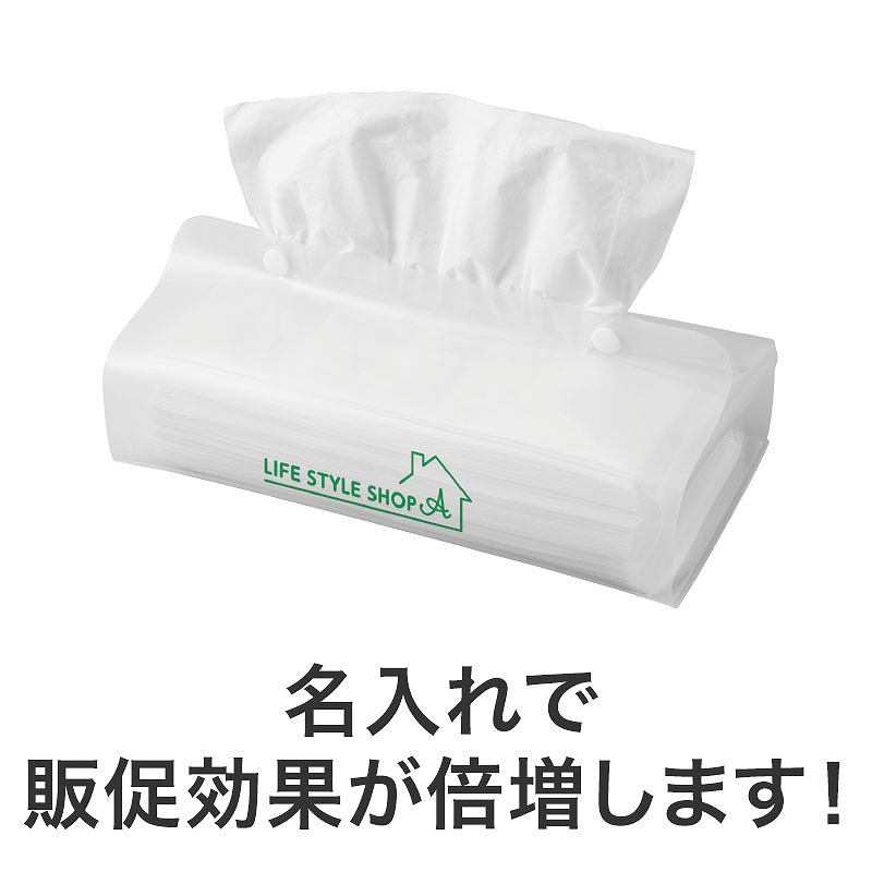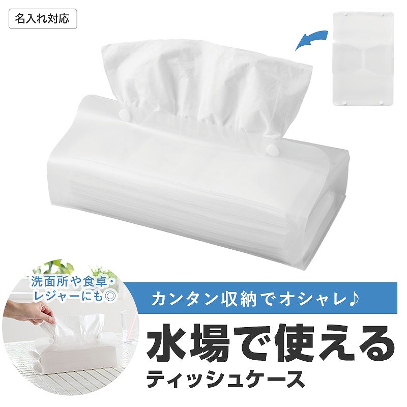 キッチンやレジャーなどの水場でも使えるティッシュケース。名入れをすれば、長く販促効果が続きます