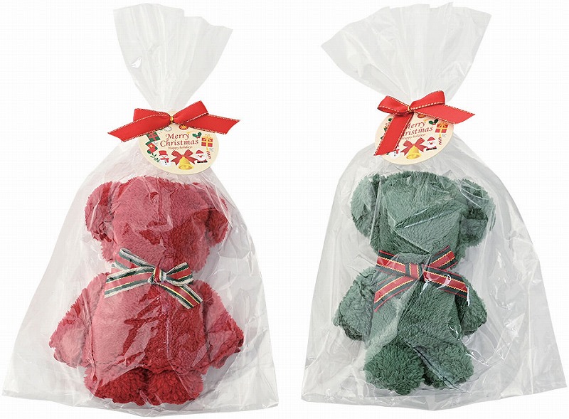 ふんわりタッチのマイクロファイバータオルハンカチがクリスマスカラーのベアマスコットに!