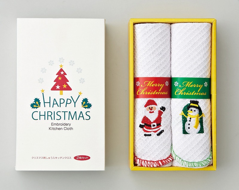 ”販促品 ノベルティ グッズ” 『クリスマス刺しゅうキッチンクロス(2枚セット)』