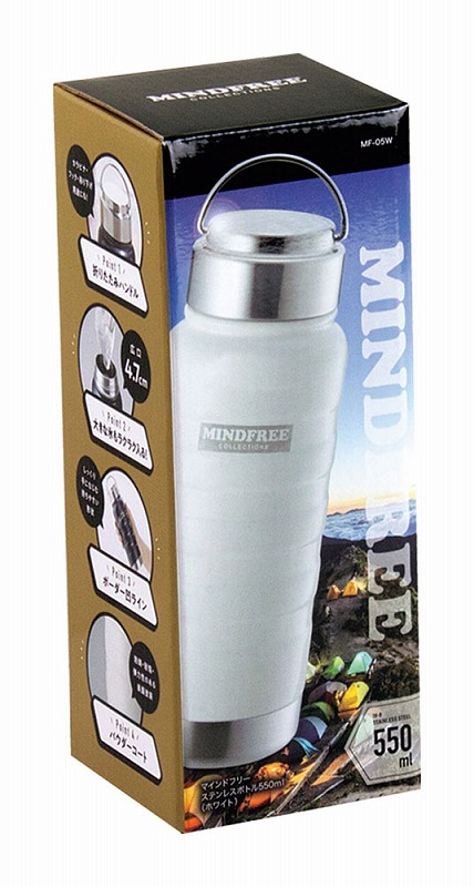 本体(内瓶)/18-8ステンレス、胴部/18-8ステンレス(粉体塗装)、フタ栓/ポリプロピレン、ステンレス鋼、ハンドル/ステンレス鋼、パッキン/シリコーンゴム