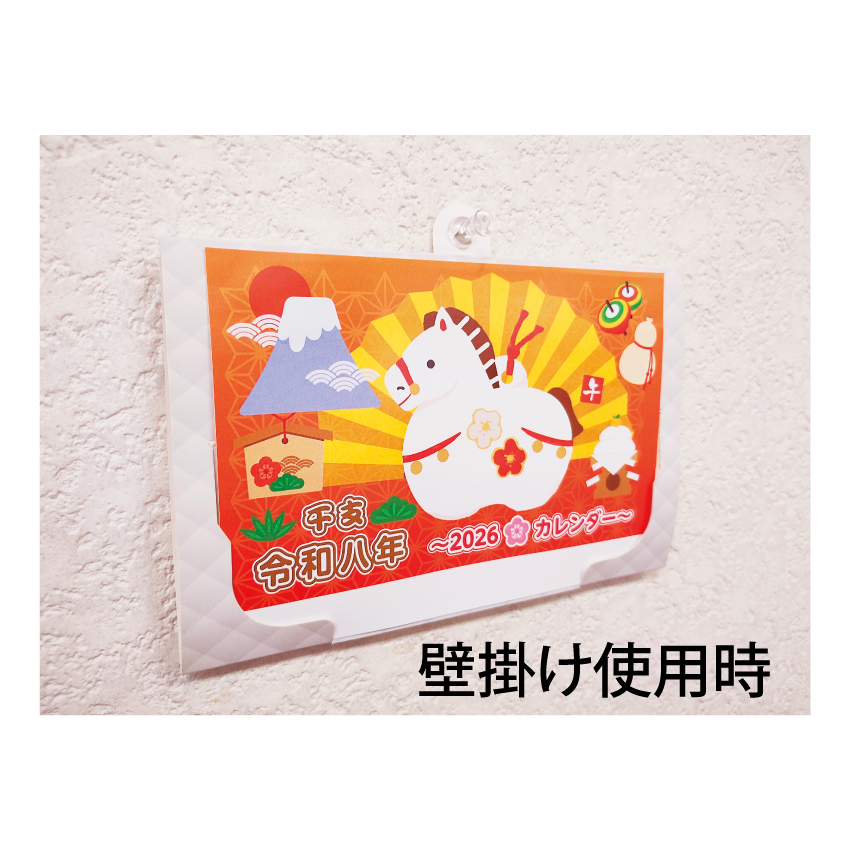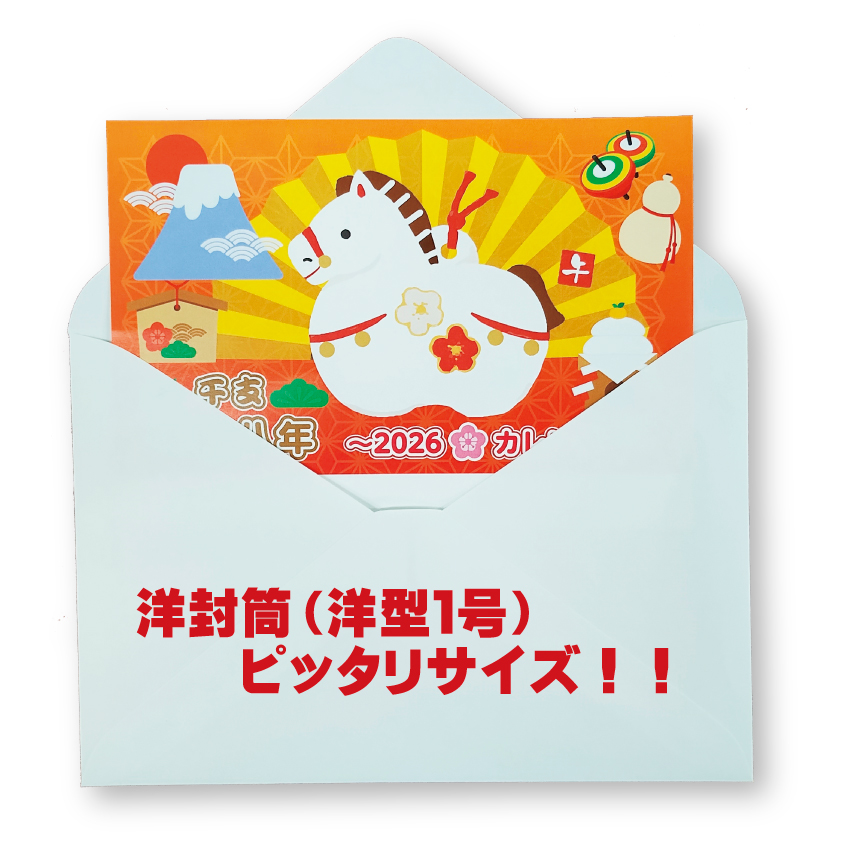 卓上・壁掛け、いずれにも使えるDMで送れる薄型カレンダー。洋形1号封筒にピッタリ入り、普通郵便で送れます。ALL紙製で環境にもやさしい。※名入れ商品は品番17-002をご覧ください。※表紙柄:干支(寅)のみ