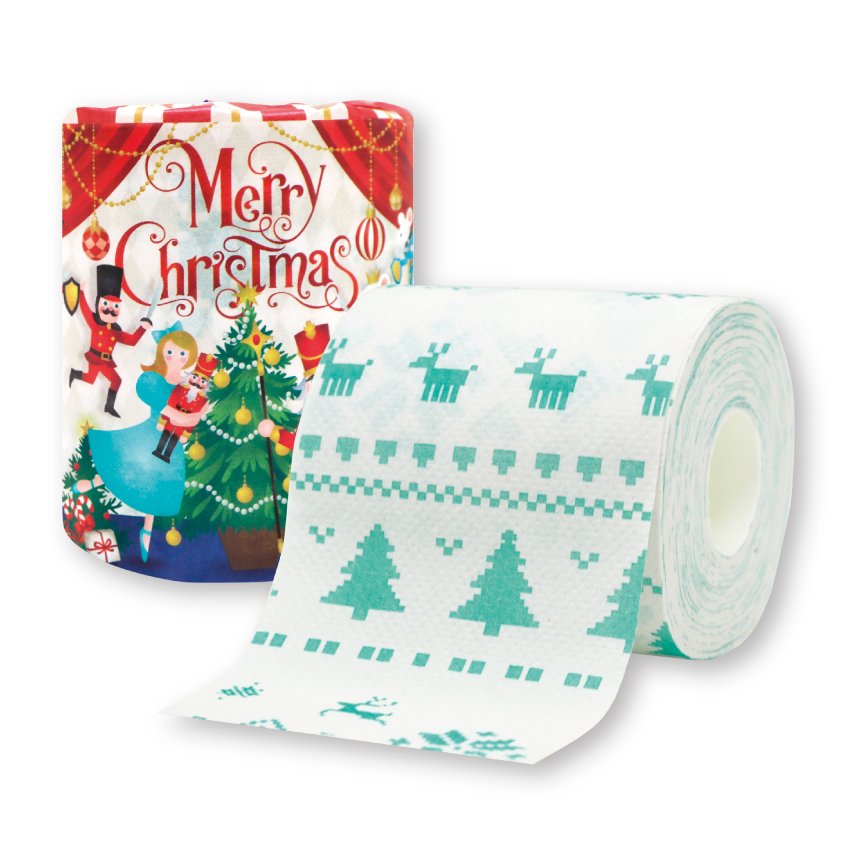 ペーパーにもクリスマス柄のプリントが入ったトイレットペーパーです。(シングル)
