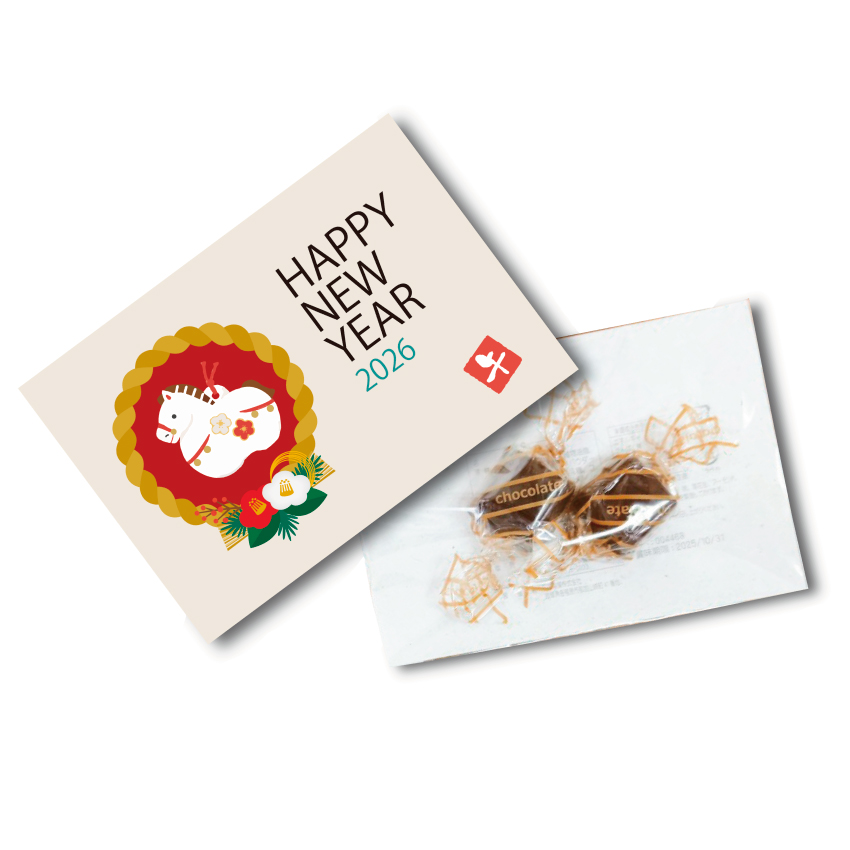 個包装キューブチョコ2個をセットしました。干支柄パッケージは2色アソートです。