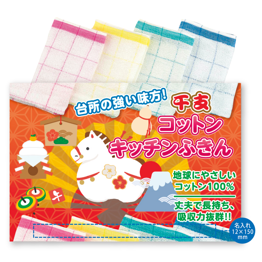ふきん×1枚(青、緑、黄、桃4色 色指定不可)