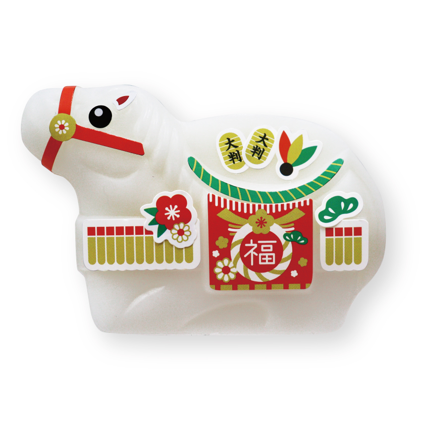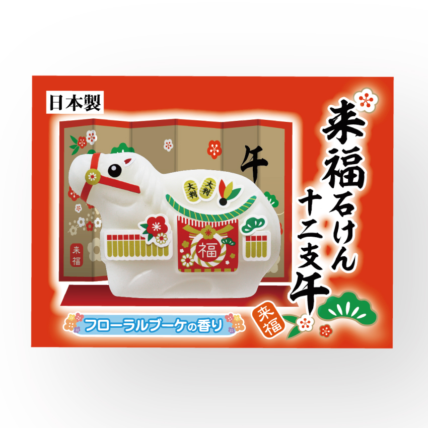 お正月の飾り用に屏風や敷物がセットされた干支石鹸です。飾った後は石鹸として使える縁起物。