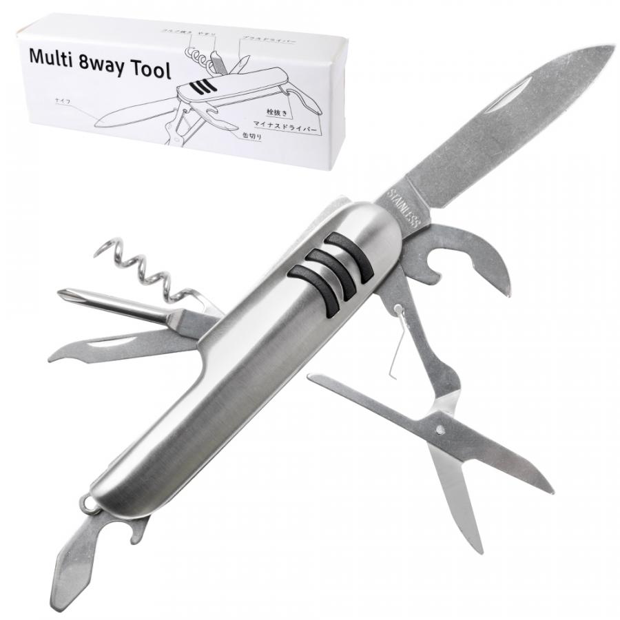 アウトドアグッズとして、また防災商品としても常備しておきたい8つの機能を凝縮した多機能なツールです。 ■ツール内容:ナイフ、はさみ、缶切り、栓抜き、マイナスドライバー、プラスドライバー、やすり、コルク抜き