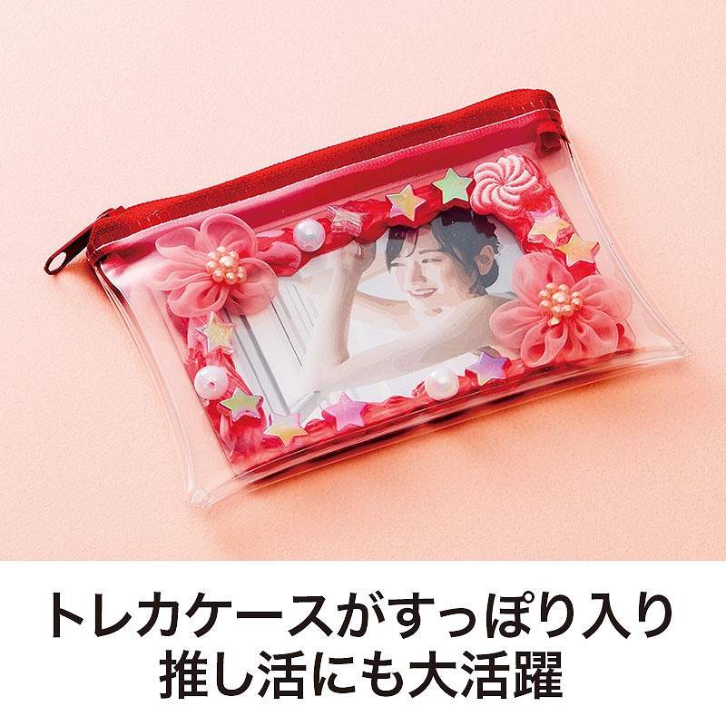 トレカケースがすっぽり入るサイズ感で、デコレーションしたカードの保護や持ち運びにも役立ちます。