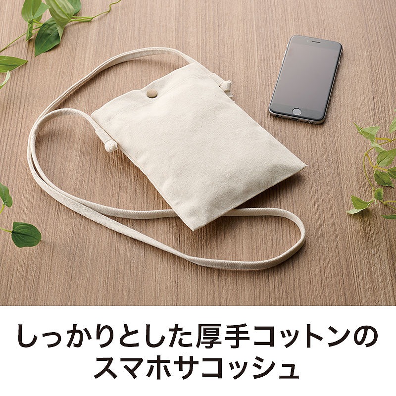 しっかりとした厚手コットンを使用したスマホサコッシュです。