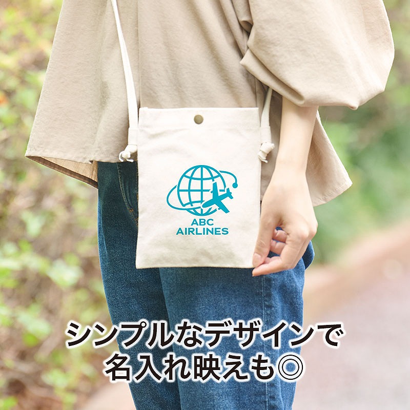 ”名入れ ロゴ入れ オリジナル” 『カラモ コットンスマホサコッシュ ナチュラル』