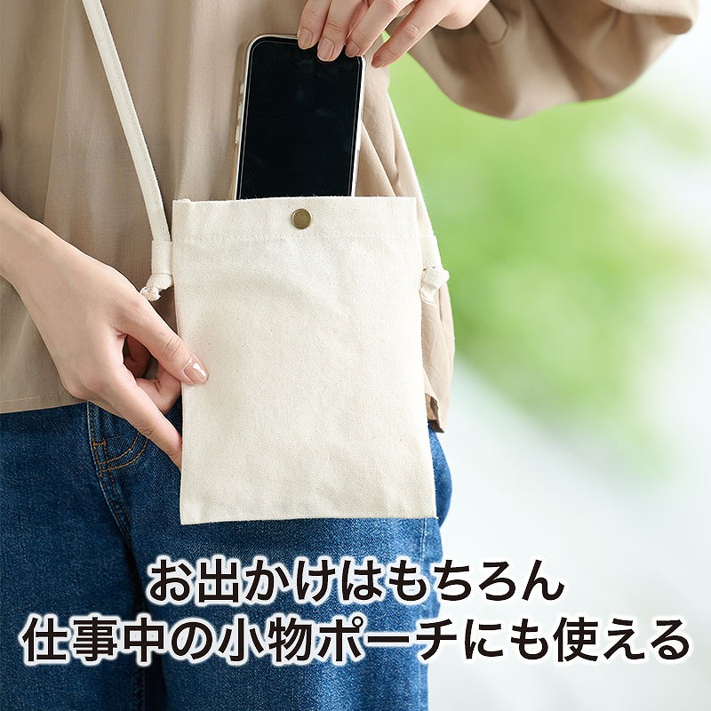 10オンスの丈夫なコットン素材で、スマホや小物を安心して持ち歩けます。