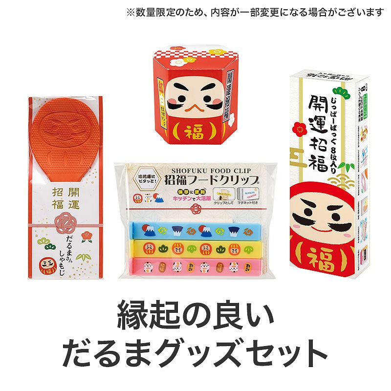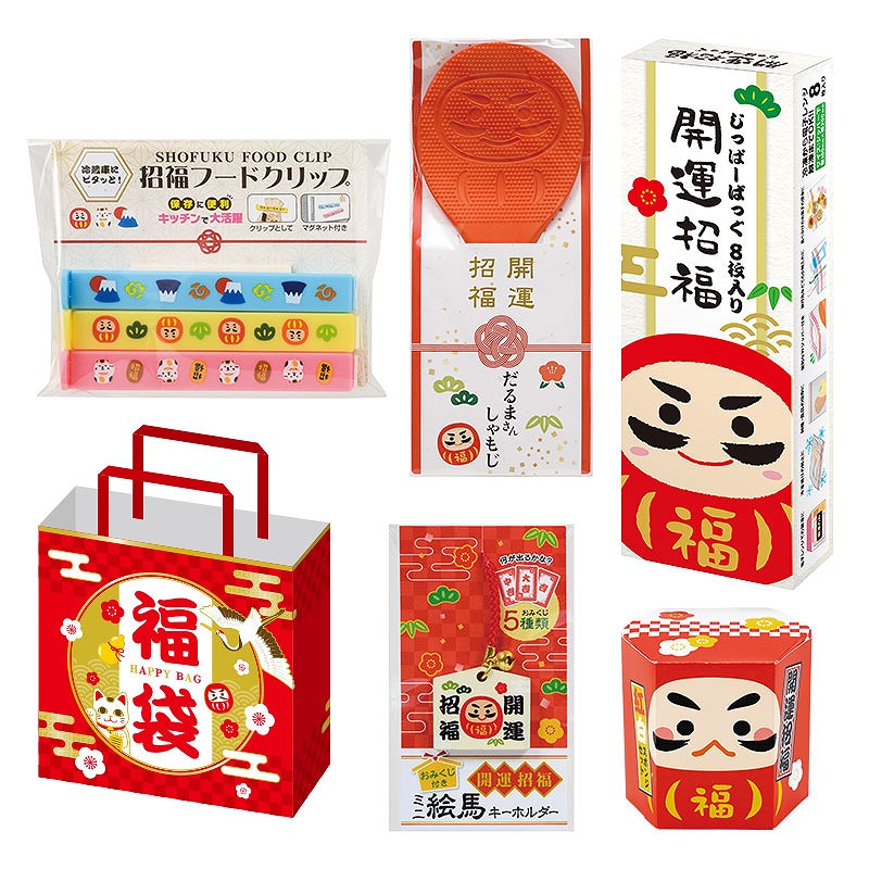 内容:フードクリップ(3個組)・しゃもじ・キッチンスポンジセット・ジッパーバッグ(8枚入り)・ミニ絵馬キーホルダー・福袋小 各50