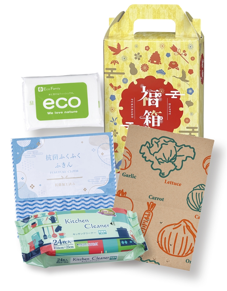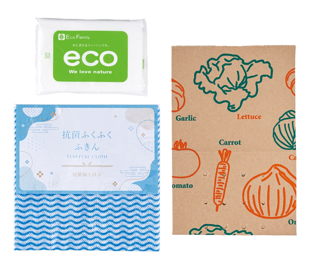 <セット内容> ・キッチンクリーナー24枚×1 ・紙製水切り袋1枚×1 ・抗菌ふくふくふきん1枚×1 ・エコポケットティッシュ8W×1