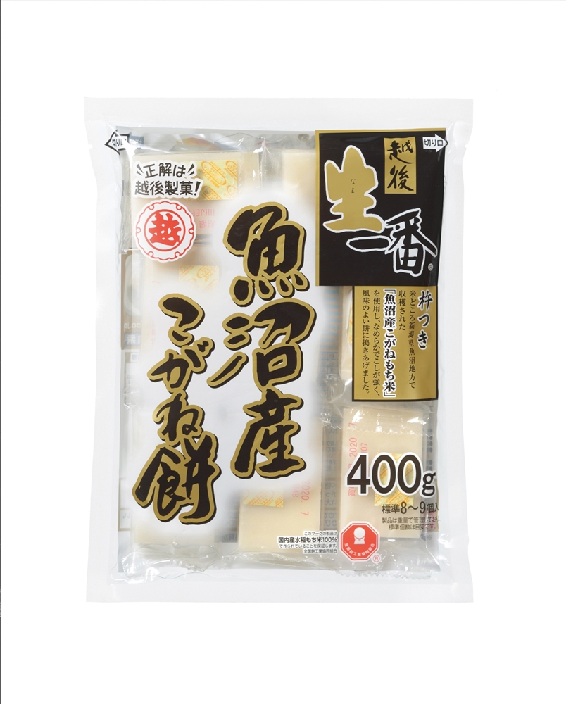 米どころ新潟のもち米「こがねもち」を100%使用した「新潟県産こがねもち」、新潟県魚沼産の最高級もち米を使用した「魚沼産こがねもち」、新潟県の頸北地方の契約農家で生産された特別栽培もち米を使用した「特別栽培米生切もち」など、こだわりのお米を使ったお餅です。