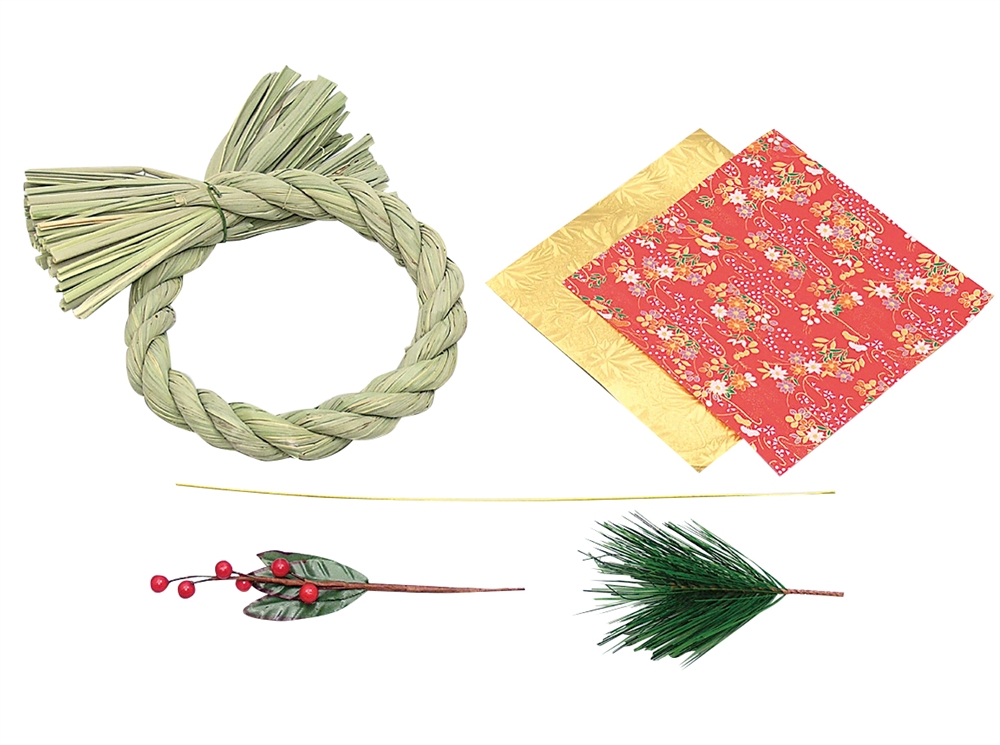 <セット内容> なわ×1・千代紙×2・南天×1・松×1・かざりひも×1