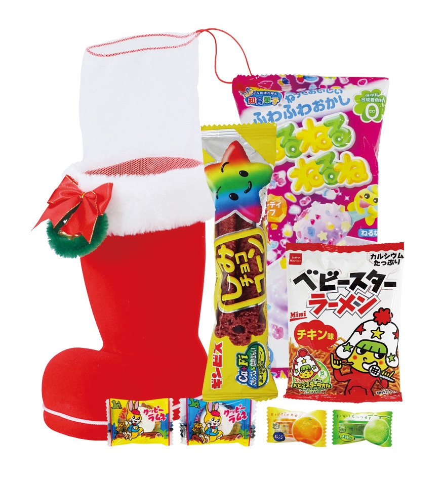 <キット内容> [A賞]サンタブーツBIGサイズ(お菓子7個入)・・・1本 [B賞]サンタブーツLサイズ(お菓子6個入)・・・2本 [C賞]サンタブーツSサイズ(お菓子5個入)・・・3本 [D賞]サンタブーツミニサイズ(お菓子5個入)・・・4本 [E賞]サンタチョコセット・・・20本 <付属品> 抽選用くじ×30、クリスマス抽選箱×1、くじ明細書×1、告知用A3ポスター×1 ※賞品の内容・仕様は画像と異なる場合があります。あらかじめご了承ください。