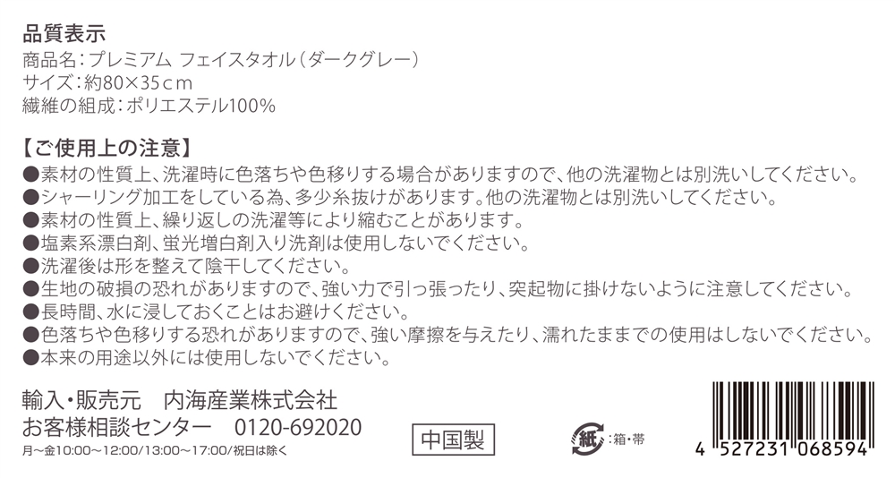 ”販促品 ノベルティ グッズ” 『プレミアムフェイスタオル(ダークグレー)』