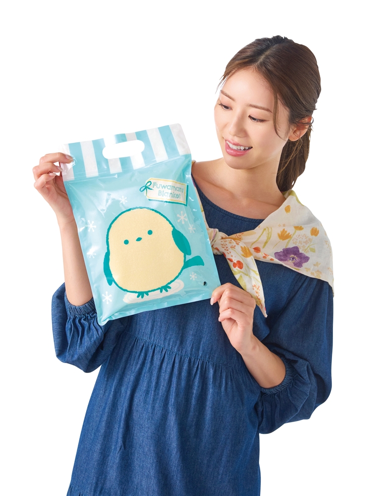 「雪の妖精」とも言われるかわいいシマエナガのパッケージの中身は、やさしいクリーム色のふわふわタッチのブランケット。肌寒い日もこれでほっこり癒されよう♪