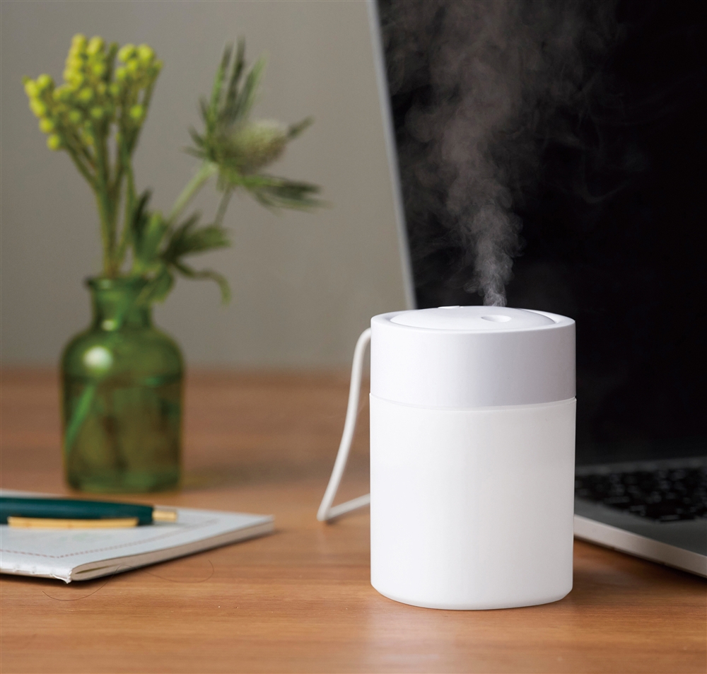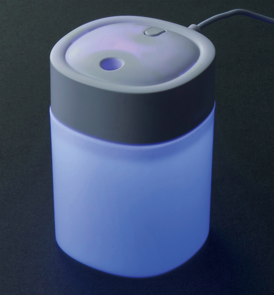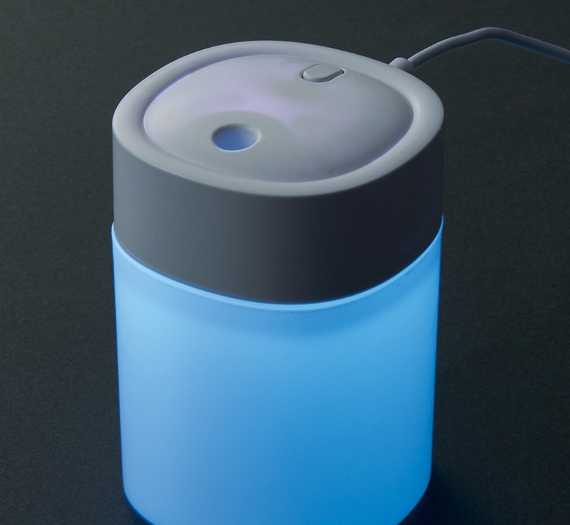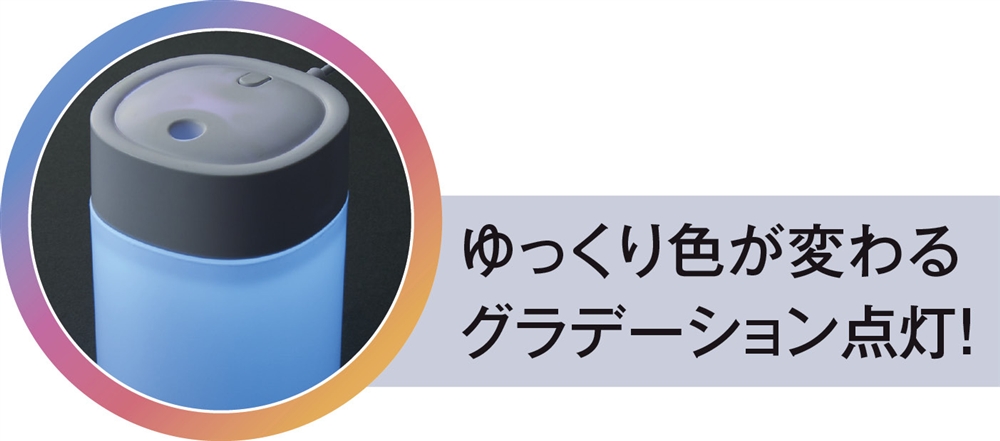 使用中はゆっくりと色が変わるグラデーション点灯仕様。名入れをしてオフィスワーカーや学生向けの冬場のノベルティとして。