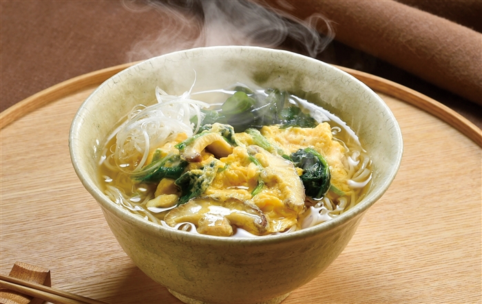 お湯をかけるだけの簡単調理。特殊なフリーズドライ製法で作られた麺は、茹でたて同様のコシが楽しめます。簡単安全調理の細くてつるつるの麺はお子さまやお年寄りの方も食べやすい仕上がりです。