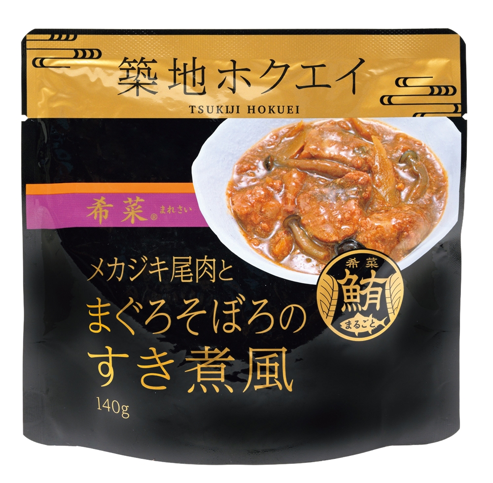 <セット内容> まぐろ尾肉入りまぐろそぼろカレー・メカジキ尾肉とまぐろそぼろのすき煮風・まぐろ黒身の生姜醤油煮各140g×各1