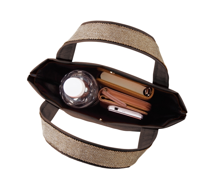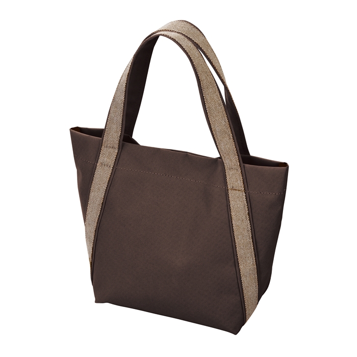 斜めに配置されたハンドルがスタイリッシュなミニトート。