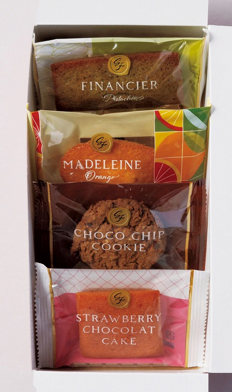 セット内容量/4個(ストロベリーショコラケーキ、オレンジマドレーヌ、ピスタチオフィナンシェ、チョコチップクッキー)