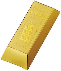 ゴールドバー風パッケージがディスプレイ映えし、 キラキラ光り高級感のある箔押しがポイント。 ふわふわ優しい手触りが嬉しいハンドタオルです。