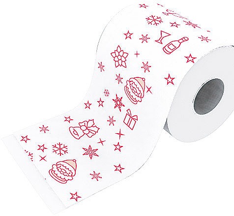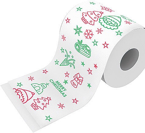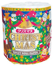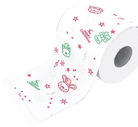 クリスマスのデザインが、外パッケージにも 中のロールにも入ったかわいらしい トイレットロールです。
