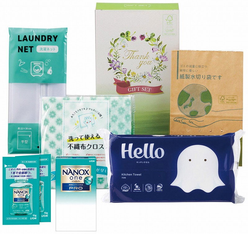 セット内容/ナノックス2包・ハローキッチンペーパー70枚・ランドリーネット・不織布クロス・紙製水切り袋