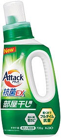 じめじめ密集干しでも強力に消臭する 花王アタックの部屋干し用洗濯洗剤です。 外干しとしても使用できます。