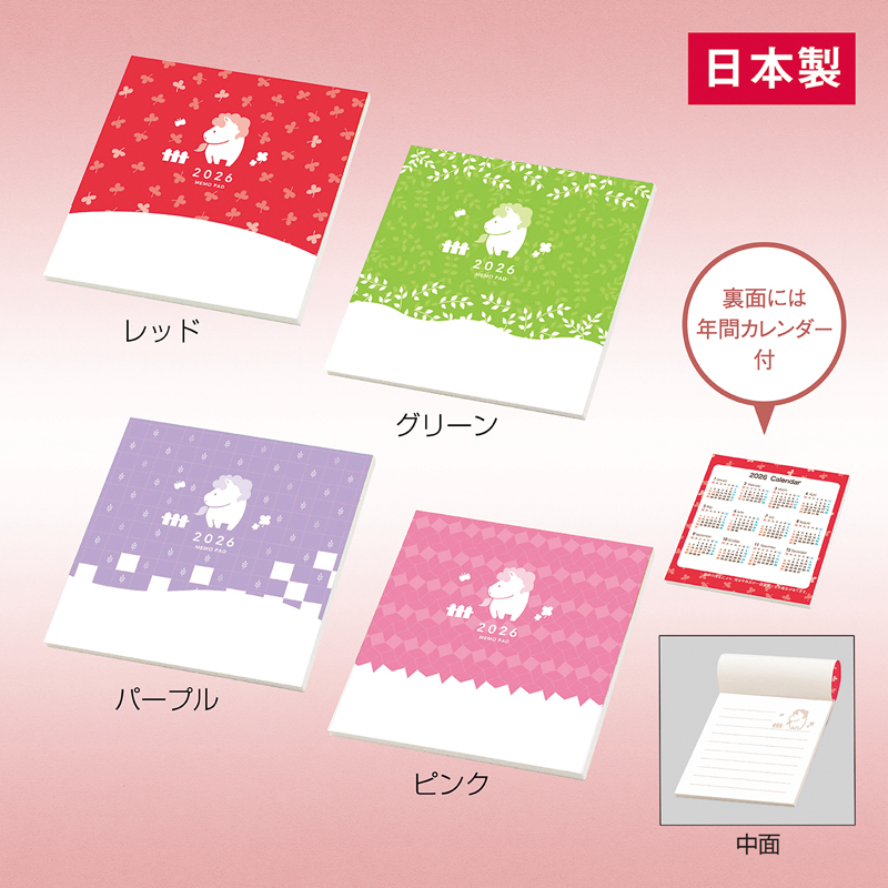メモ40枚 ※色によりデザインが異なります