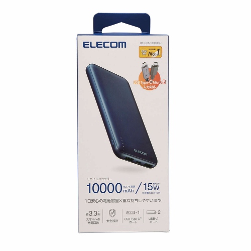 【名入れ専用】 エレコム モバイルバッテリー 10000mAh/USB-C×1/USB-A×2/microB×1/ブルーDE-C66-10000BU