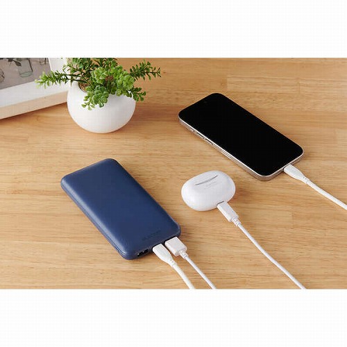 ”ノベルティ商品” 『【名入れ専用】 エレコム モバイルバッテリー 10000mAh/USB-C×1/USB-A×2/microB×1/ブルーDE-C66-10000BU』