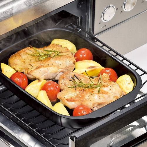 魚焼きグリルがオーブンに変身、グリルを汚さず本格調理ができます。ふっくら蒸し焼きができる蓋付です。