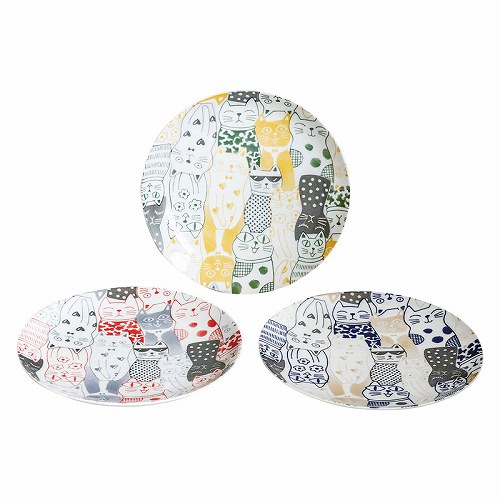 ユーモアと個性あふれるスタイルの8匹がぞろりぞろり。可愛らしい猫いっぱいの柄が特徴的で食卓を明るく彩ります。