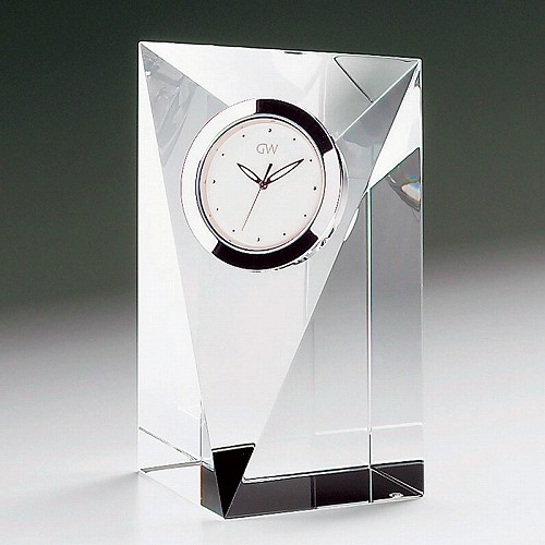 クリスタル製の時計付き盾をまとめたカテゴリ。各種記念品や表彰などの記念品向けにレーザー刻印やサンドブラスト加工に対応しています。